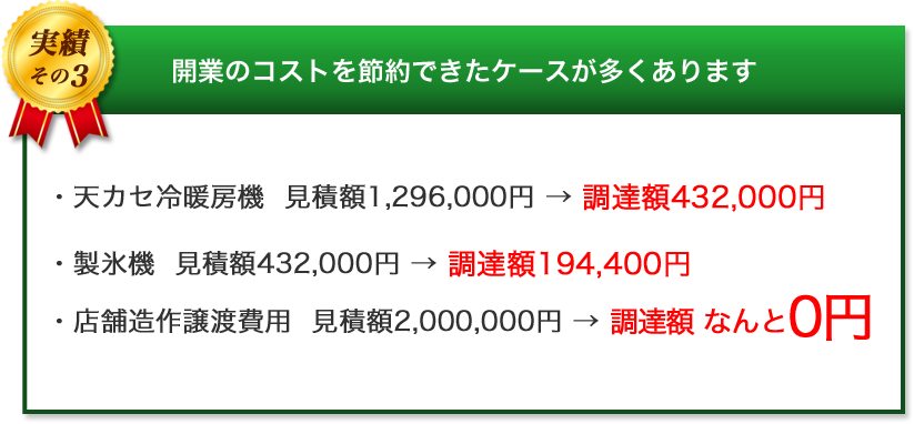 | 開業融資サポート | 着手金0円 成功報酬1% |